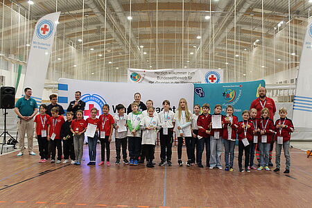 Über 150 ehrenamtlich engagierte Rotkreuzlerinnen und Rotkreuzler zwischen 8 und 16 Jahren hatten am Samstag, den 25. Oktober 2025, die Chance, in verschiedenen Disziplinen ihr vielseitiges Können unter Beweis zu stellen. Sowohl innerhalb als auch außerhalb des Beckens kämpften sie beim 17. Bundeswettbewerb im Rettungsschwimmen in insgesamt 26 Teams aus fast allen Bundesländern um einen Platz auf dem Siegertreppchen. Der Wettbewerb wurde gemeinsam von der Wasserwacht des Deutschen Roten Kreuzes und dem Deutschen Jugendrotkreuz (JRK) in Dresden ausgerichtet.