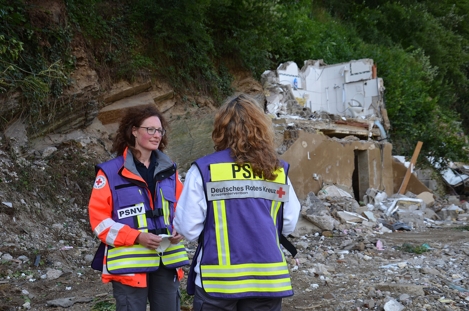 Sowohl in diesen schweren Stunden als auch in anderen akuten Krisensituationen leisten – zumeist ehrenamtliche – Helferinnen und Helfer des Deutschen Roten Kreuzes "Erste Hilfe für die Seele" und psychosoziale Akuthilfe für Betroffene. Sie sind da, hören zu, begleiten.