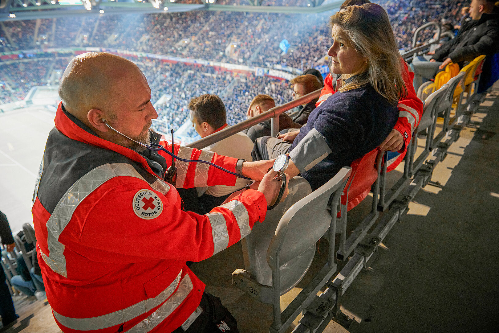 Ob Rockkonzert, Fußballspiel, Karnevalsumzug oder Straßenfest – wo viele Menschen zusammenkommen, gibt es viele kleine und größere Notfälle. Hier leistet der Sanitätsdienst des Deutschen Roten Kreuzes ebenso schnelle Hilfe wie im Katastrophenfall. Der Sanitätsdienst ist auch zur Stelle, wenn Menschen verschüttet wurden: mit den Rettungshunden.